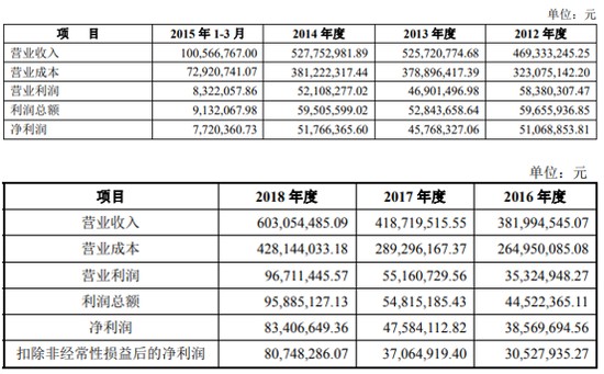 一是,錫裝股份 2015 年 9 月報送的滬市主板 IPO 申報稿顯示,公司 2012 年至 2014 年的營業收入分別為 4.69 億元、5.26 億元、5.28 億元,淨利潤分別為 5106.89 萬元、4576.83 萬元、5176.64 萬元。而錫裝股份 2019 年 6 月簽署的深市主板 IPO 申報稿顯示,公司 2016 年至 2017 年營業收入分別為 3.82 億元、4.19 億元,淨利潤分別為 3856.97 萬元、4758.41 萬元。從數值來看,錫裝股份 2016 年和 2017 年的營業收入均不如 2012 年、2013 年、2014 年,2016 年和 2017 年的淨利潤則如不 2012 年和 2014 年。