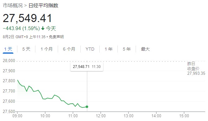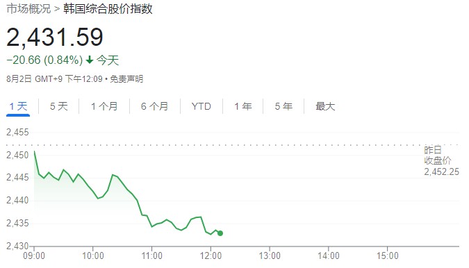 8 月 2 日週二,受到投資者避險情緒升温的影響,亞太市場小幅低開。