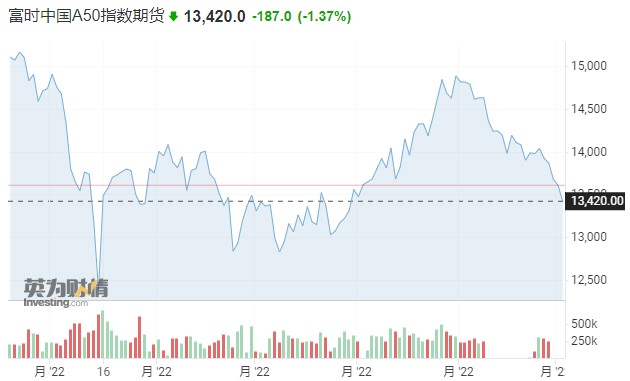 富時中國 A50 指數期貨跌幅收窄至 1.37%。