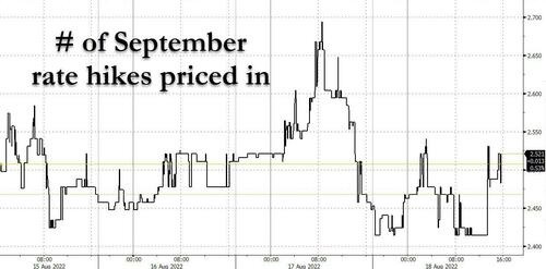 貨幣市場的押注顯示,9 月美聯儲加息 50 個基點屬於 “板上釘釘”,昨日 FOMC 紀要指出 “未來某個時間點適合放慢加息步伐”,則令下個月加息 75 個基點的概率從 52% 降至 35%,9 月 FOMC 會議前還有美國 8 月 CPI 和非農就業數據,可能會影響加息幅度。同時,貨幣市場完全計價入 9 月歐洲央行加息 50 個基點,另有 40% 的可能性進一步小幅加息 25 個基點。