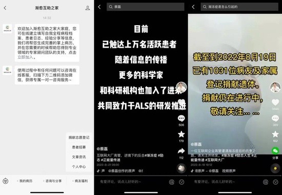 除了錢,沒有數據科研工作同樣寸步難行。為此,蔡磊建立了愛斯康和 “漸愈互助之家”,至今年 8 月已觸達超萬名患者,成為世界最大的 “漸凍症” 民間數據平台。