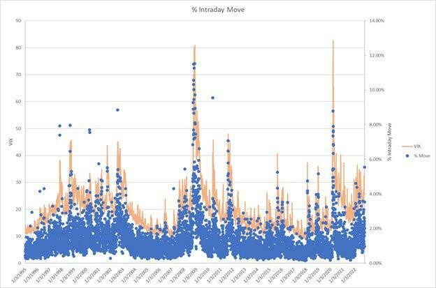 熊市的主要標誌是日內交易區間較大。目前,美股正在往這個方向邁進。