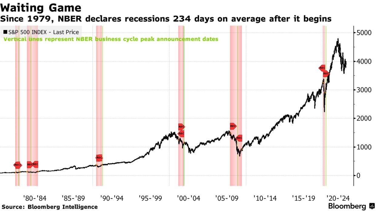 媒體的一項調查顯示,受訪者預測美國經濟將在今年第二和第三季度出現萎縮。儘管這符合對衰退的標準定義,但數據顯示,自 1979 年以來,美國國家經濟研究局 (定義美國經濟是否陷入衰退的官方機構) 直到衰退開始平均 234 天后才宣佈衰退正在發生。