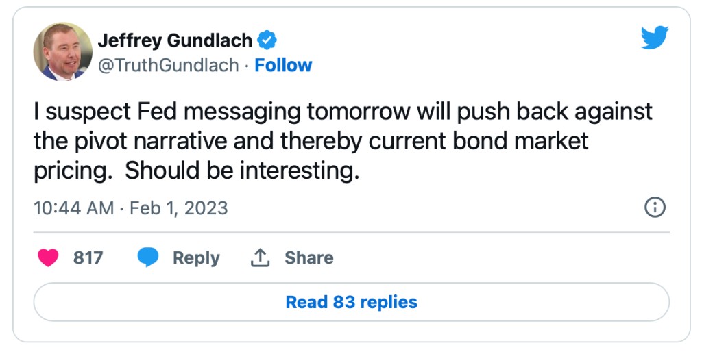 周三,美国投资公司 DoubleLine Capital 创始人、拥有 “新债券之王” 之称的 Jeffrey Gundlach 发推文驳斥了转向猜测: