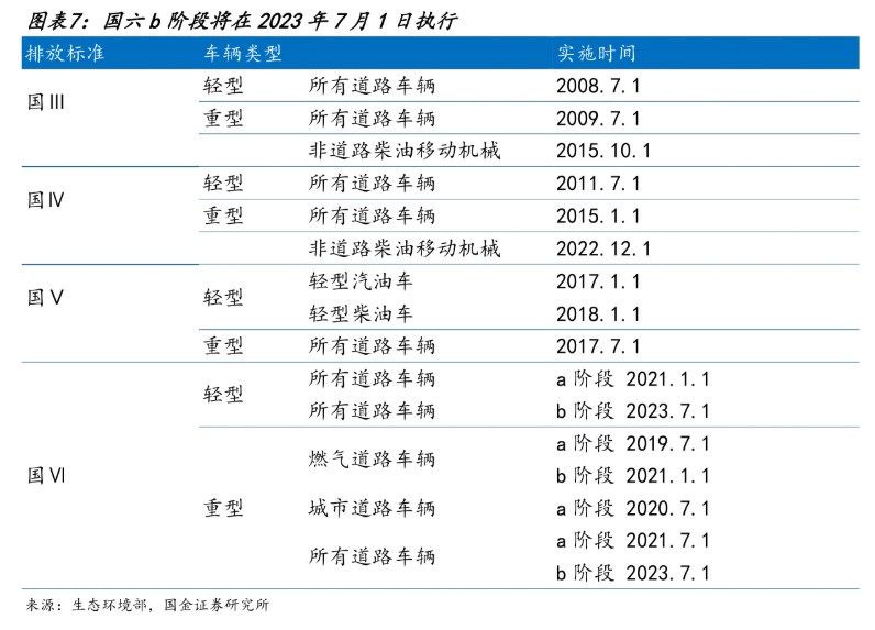 我國於 2019 年 7 月 1 日起分階段、分地區逐步推行國六標準,其中國六 a 已於 2021 年 7 月 1 日全面落地,而排放更嚴格的國六 b 標準將於 2023 年 7 月 1 日起全面落地。