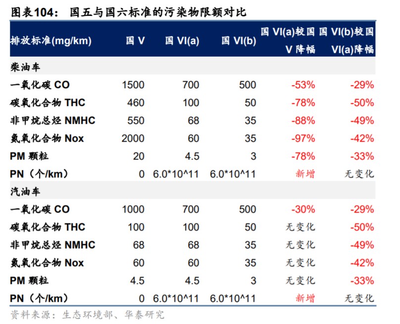 華泰證券認為,國六標準參考了美國加州和歐洲排放標準中較嚴格的部分,大幅收緊了各類污染物的排放限額,嚴格的排放限制將進一步放大龍頭公司的優勢。