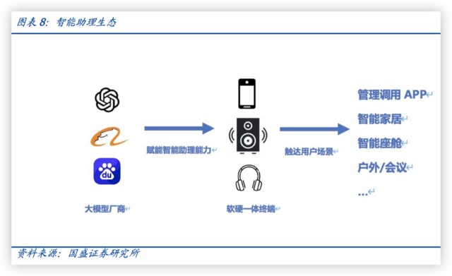 智能硬件厂商或具有较大机会,实现软硬一体,综合场景的机会。音箱,耳机曾经单纯作为音频设备功能比较单一,用户需求有限,附加值不高。随着 AI 发展,智能音箱,智能耳机成为软硬件一体的多功能设备,结合智能家居,智能座舱和移动携带场景,有望成为各场景里的智能助理核心载体设备,从非必需品转为必需品。
