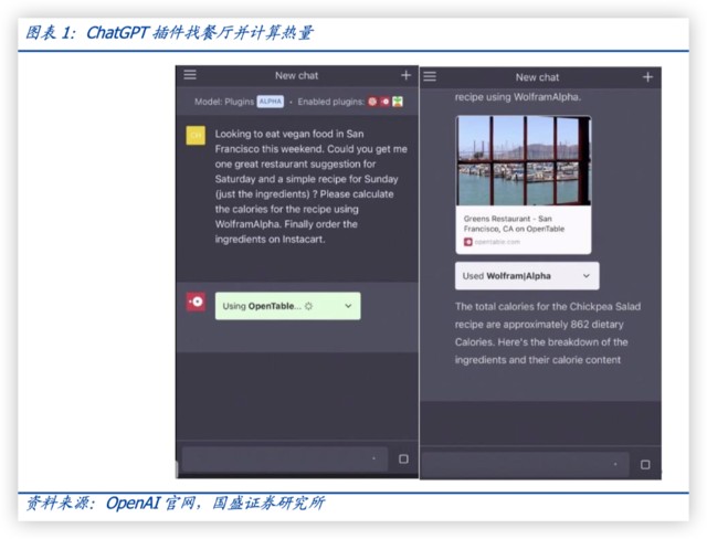 ChatGPT 插件的发布,让 ChatGPT 的能力从 NLP,拓展到可以获取实时信息并代替用户执行操作,用户可以直接通过人类语言指挥 ChatGPT 帮自己与各种应用交互,一定程度上 ChatGPT 已经可以当作是人类的智能助理。OpenAI 官网展示的插件的具体功能已经包括了推荐餐厅、制定网上购物、出游、办公、检索、语言教学等,涵盖衣食住行各个方面。