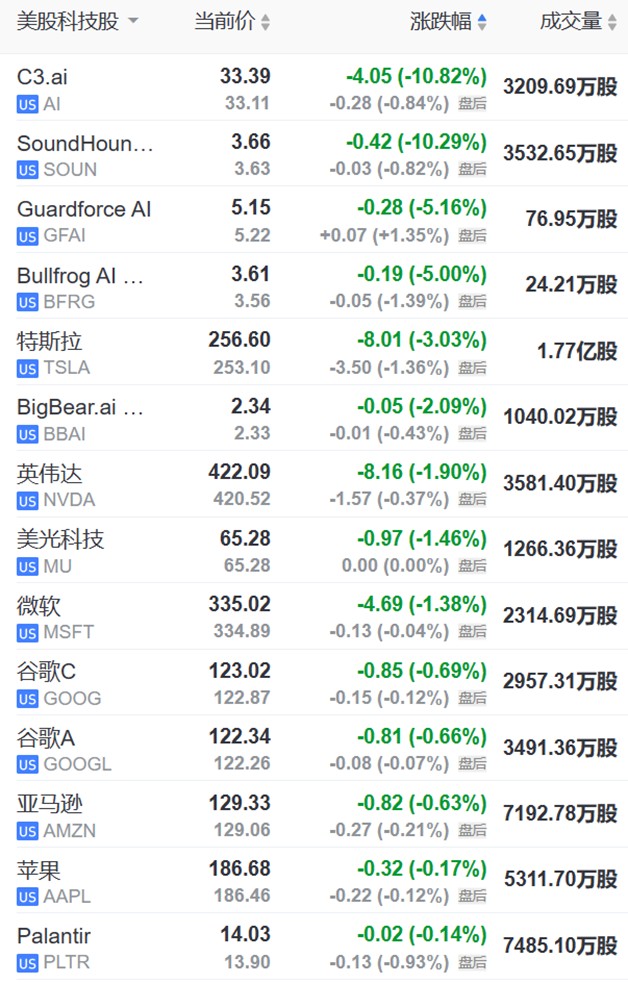 隔夜美股 AI 板块全线下跌,多只 AI 概念股重挫。