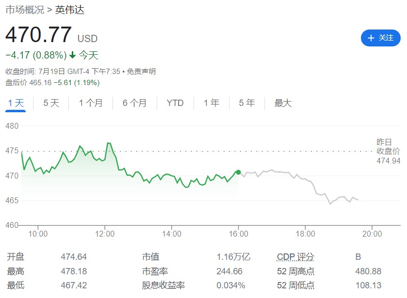 英偉達延續盤中跌勢,盤後跌超 1%。