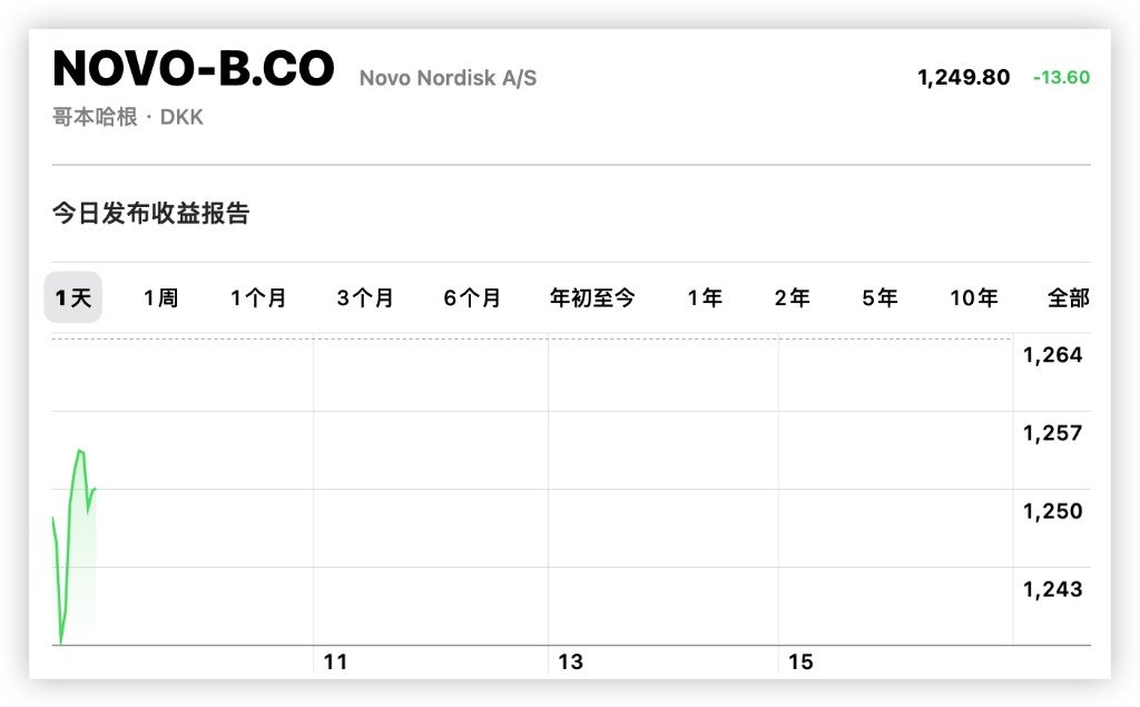 At the time of writing, Novo Nordisk's Class B shares listed on the Copenhagen Stock Exchange fell more than 1%.