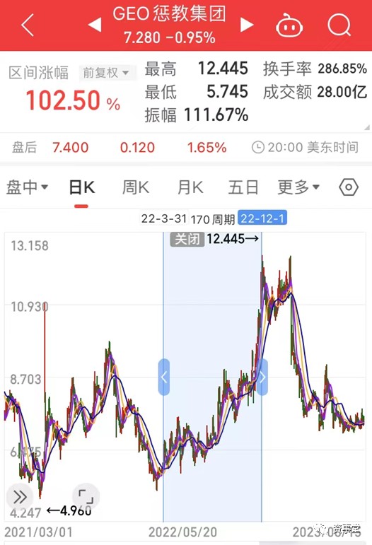 During the period when Boli heavily held GEO, the stock price of this listed company rose by more than 100%, but it started to decline significantly in the first quarter of this year. Boli's pace of increasing and reducing positions in this stock has accurately followed the market rhythm.