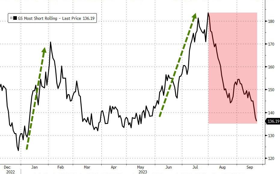 A basket of stocks heavily shorted by Goldman Sachs fell more than 10% this month, bringing substantial profits to the short sellers.