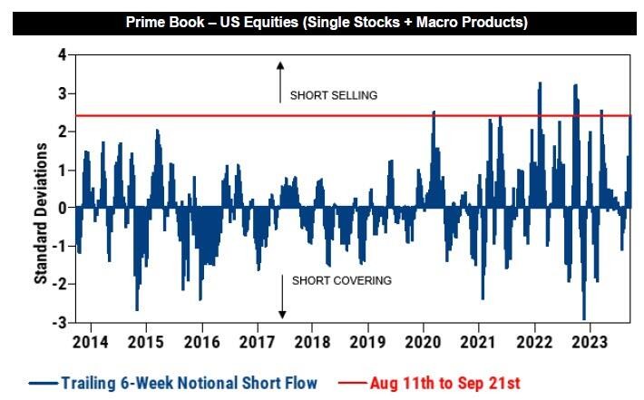 According to Goldman Sachs, looking at a six-week cycle, September to October 2022 was the most intense period of short selling recently. The market remembers what happened next: the S&P 500 index surged 14% in six weeks.