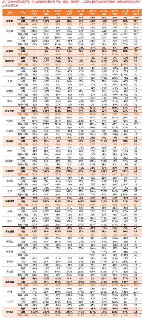 In the overall sluggish environment, most brands are experiencing a decline in growth. However, there are still a few brands such as Perlier, Juzi Biotech, and Shangmei Corporation that have achieved counter-growth.
