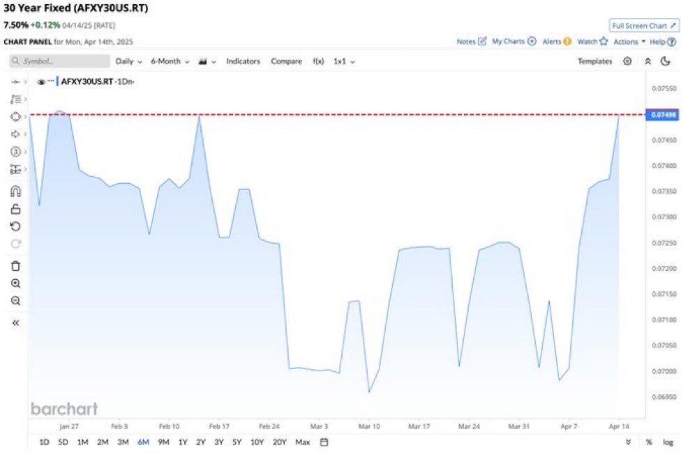 30-year mortgage rates just hit 7.50%, the highest since January.
