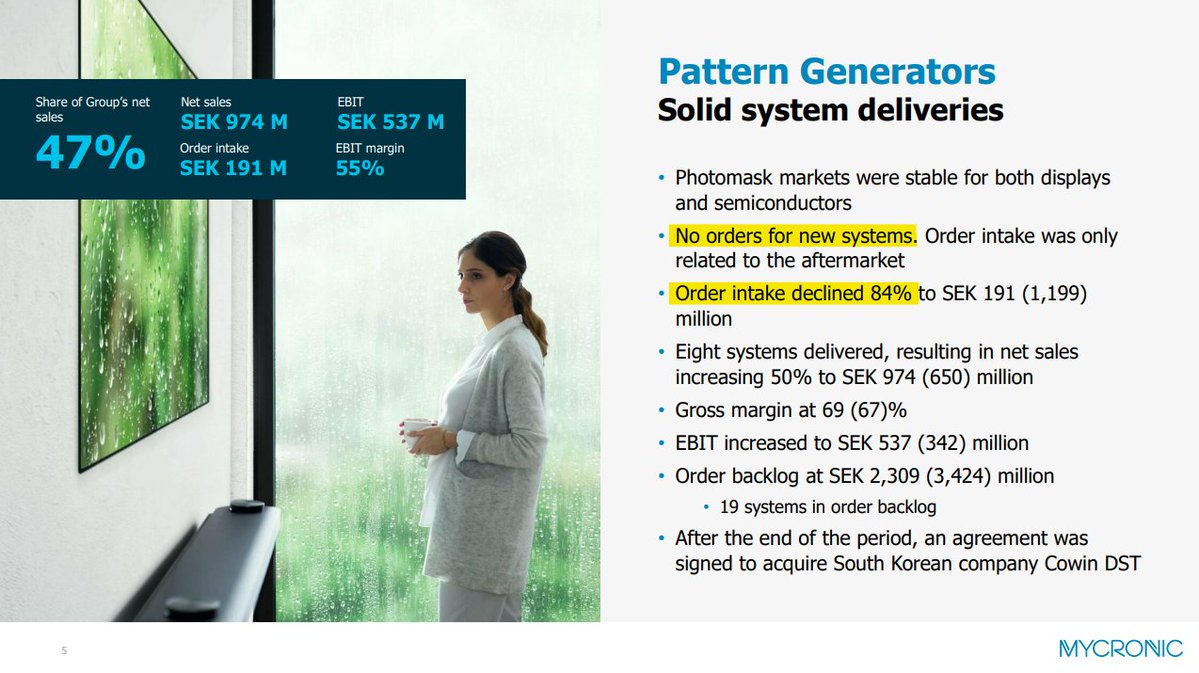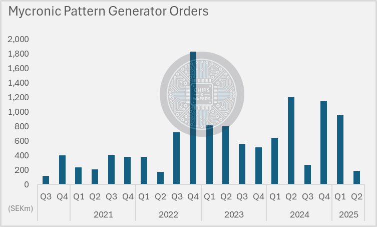 $MYCR Q2 Pattern Generator orders were down -84% YoY, as they received zero system orders for the quarter.Another quarter like this and we will have indication of an inflection point, and should expect a return to historic normalized levels.Source: Chips & Wafers