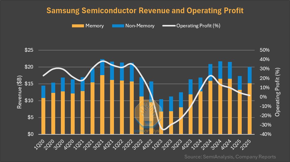 - Semi revenue up 15% q/q and down -4% y/y to $20B; OPM down for 4th straight quarter; inventory value adjustments in memory and one-off costs in non-memory affected OP- Q/Q Semi sales driven by foundry, HBM and DDR5- HBM bit shipments up 30% q/q; 80% of it HBM3ESource: Sravan Kundojjala