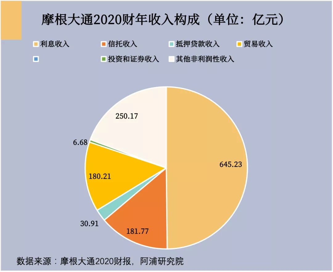 下图为 2020 年摩根大通集团 2020 年收入构成