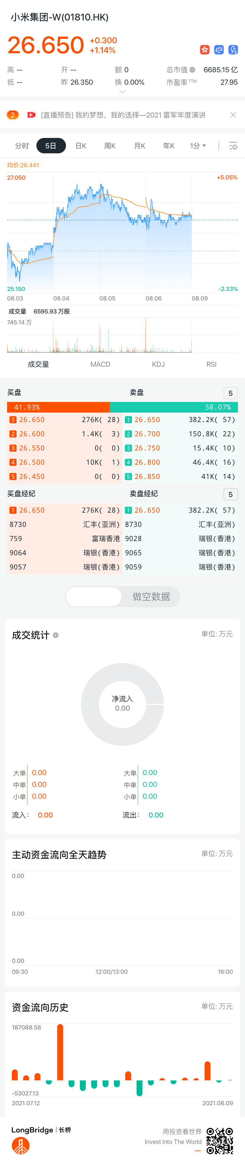 $XIAOMI-W(01810.HK) 今天小米是不是该冲一冲了