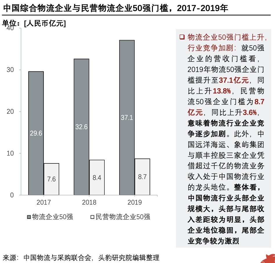 2020 年,新冠肺炎疫情的发生引发了全球供应链重构等一系列连锁反应,中小规模物流企业的业务量大幅下滑,而对于有实力的头部物流企业,则继续受益于其自有和完善的物流网络,市场竞争格局优化。