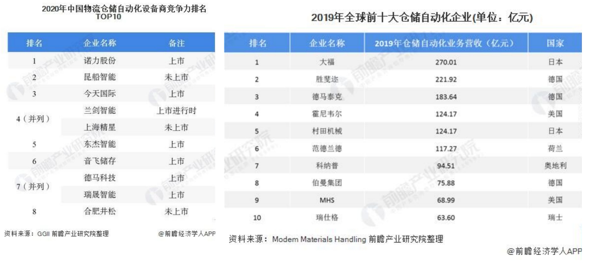 - 物料搬运系统(AGV| ASRS)供应商:德马泰克 Dematic、大福 Daifuku(日本)、胜斐迩(德国)、霍尼韦尔 Inlelligrated(北美)