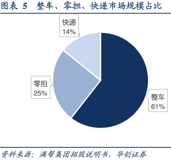 货运经纪的市场高度分散但空间巨大。据满帮集团招股书引用 CIC 数据显示,2020 年数字货运平台实现的交易总规模(GTV)占道路运输市场总规模比重超过 4%,同时预计 2025 年这一比重将达到 18%。