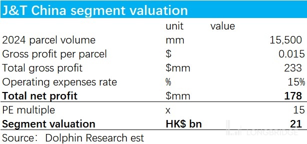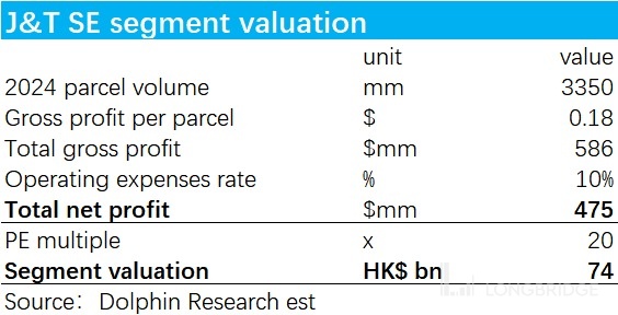 In terms of valuation, according to our calculations, J&T's current issue price of HKD 12 already reflects the company's foreseeable and deliverable performance, making it less cost-effective. From a long-term perspective, J&T has not yet formed a real competitive advantage in China. The future growth potential mainly lies in Southeast Asia and cross-border markets. Currently, Dolphin Research does not see any long-term holding opportunities.