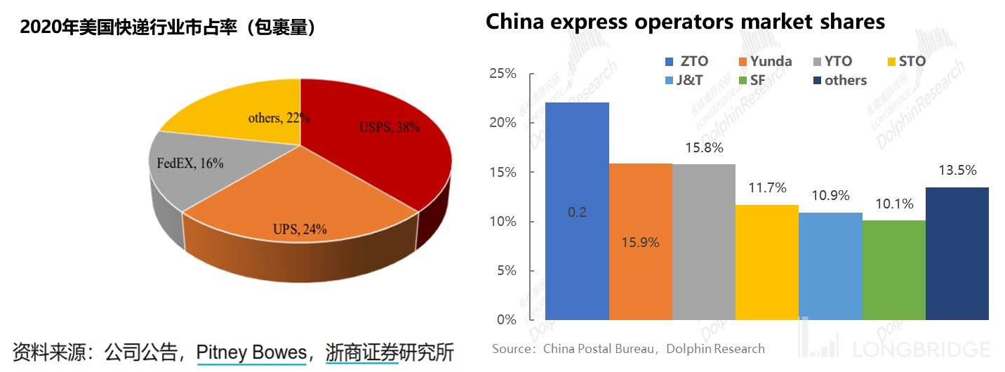 In comparison with other markets, the three major express delivery operators in the United States accounted for nearly 80% of the market share in 2020. If we add the market share of the e-commerce platform Amazon (which is said to have surpassed FedEx), the entire U.S. express delivery market is basically monopolized by four major players.