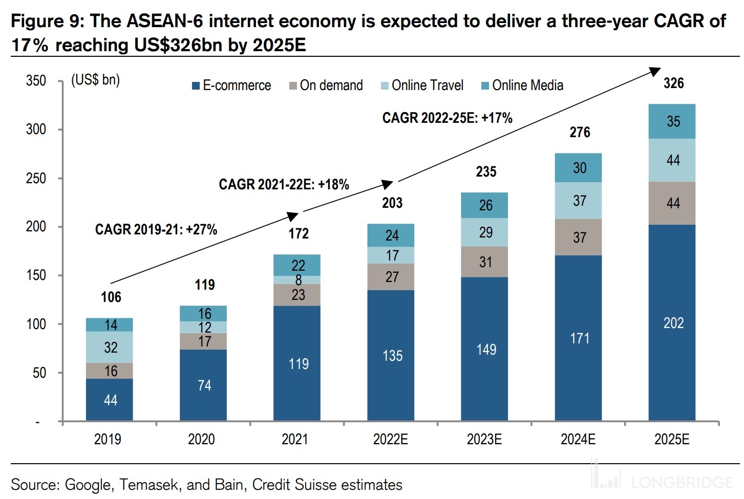 So, how is the e-commerce industry in the upstream of the express delivery sector performing in Southeast Asia? According to the Southeast Asia Online Economy Report jointly released by Google and Bain, the compound annual growth rate of the e-commerce market in Southeast Asia was 66% from 2015 to 2018, and the compound growth rate from 2019 to 2021 is still 27%, indicating that the e-commerce industry in Southeast Asia is still maintaining a relatively high growth rate.