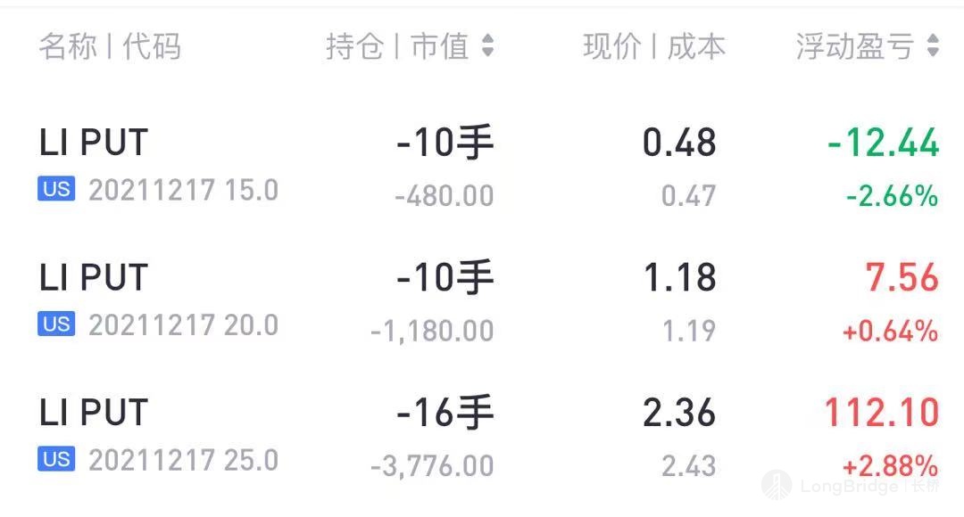 卖 PUT:同样以我的理想汽车的卖 PUT 为例