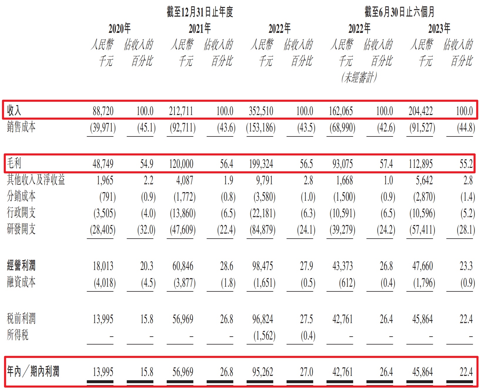 利润方面:公司在 2020 年、2021 年以及 2022 年期间,实现毛利润分别为 0.487 亿元、1.200 亿元、1.993 亿元,年复合增长率为 102.3%,同期毛利率分别为 54.9%、56.4%、56.5%。期间,公司净利润分别为 0.140 亿元、0.70 亿元、0.953 亿元,年复合增长率达 162.9%,远超营收增速。不过在 2023 年上半年净利润为 0.459 亿元,同比增长只有 7.3%,不过 20223 年上半年经调整后净利润则为 0.566 亿元,同比增长 32.5%,这么看的话,增速虽然不及前期,也还算可以,毕竟半导体行业整体都处在行业周期下行。