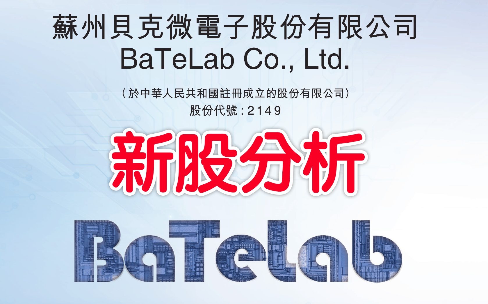 $BATELAB(02149.HK) ,于 2010 年成立,公司专注于模拟与混合信号 “全品类芯片” 及 “系统级解决方案” 的设计,公司是国内重要的模拟 IC 图案晶圆提供商,目前已量产近四百款产品料号,覆盖开关稳压器、多通道 IC 和电源管理 IC、线性稳压器、电池管理 IC、监控和调制解调 IC、驱动器 IC、线性产品等多个产品方向。公司交付的产品是附著完整电路、下游客户可自行决定通过标准易行的封装测试或使用我们提供的封装测试解决方案后即可制成单个 IC 芯片的模拟 IC 图案晶圆。