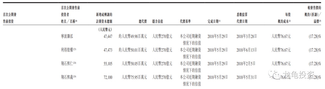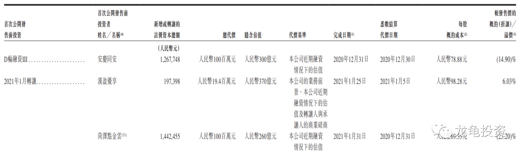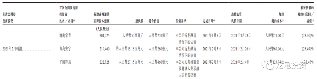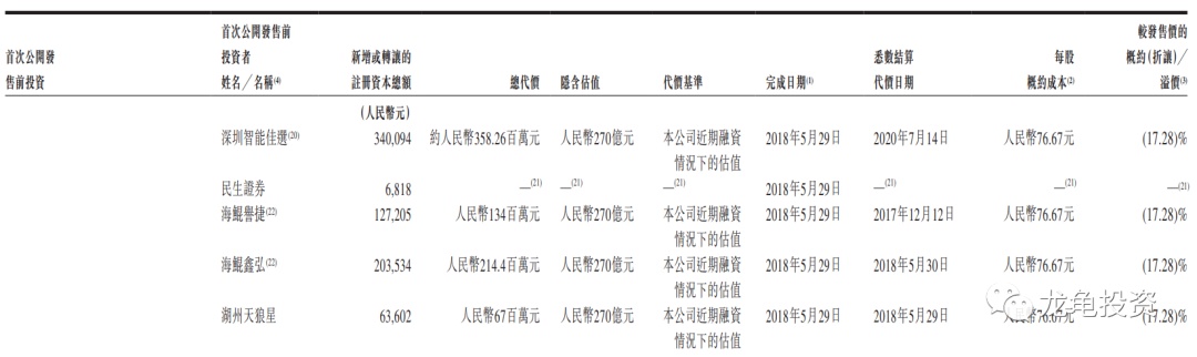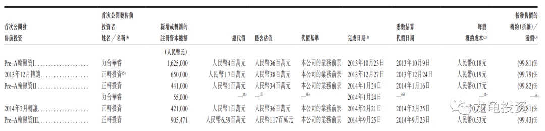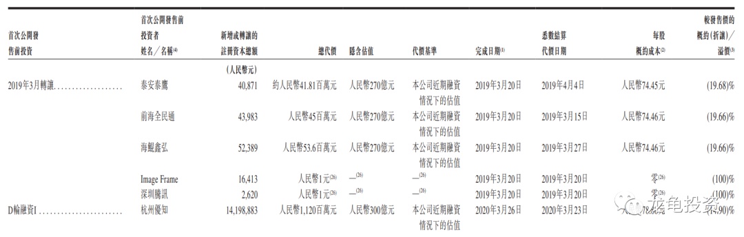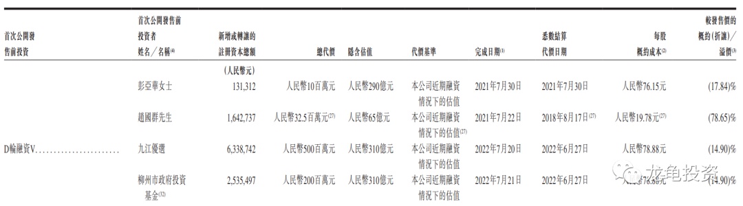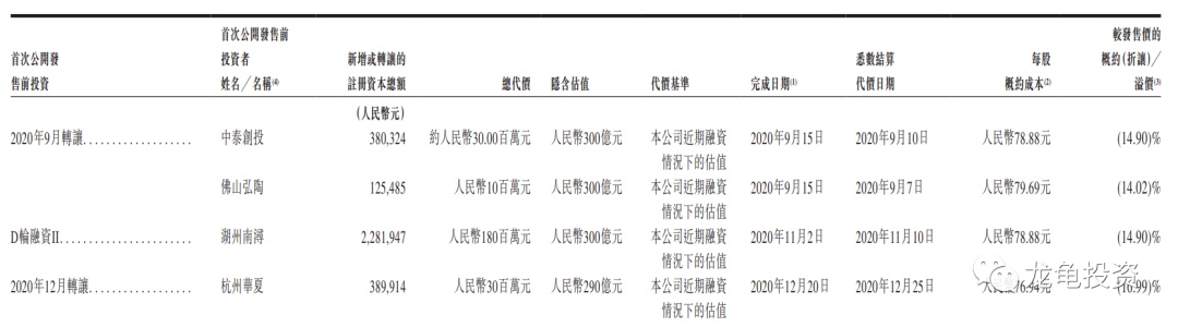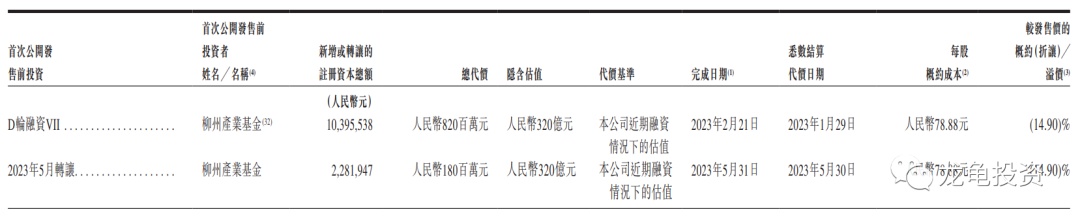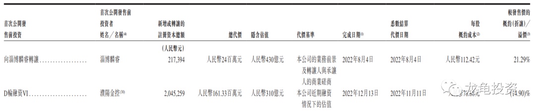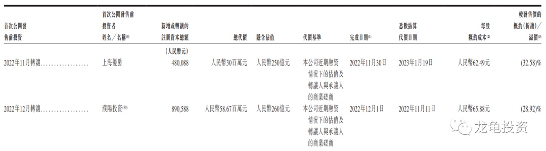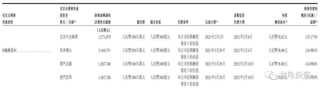 公司 IPO 前完成多轮融资,截至最后一位 IPO 投资者完成日期为 2023 年 5 月。每股成本 78.88 元人民币,较发售价折让 14.90%,IPO 前投资者禁售期 12 个月。