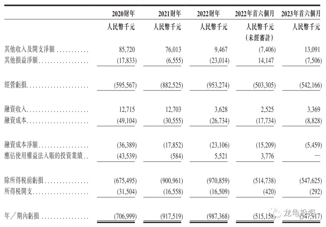 期内净亏损:2020 年净亏损 7.07 亿人民币,2021 年净亏损 9.18 亿人民币,2022 年净亏损 9.87 亿人民币,2023 年截至 6 月 30 日最近 12 个月净亏损 10.20 亿人民币。