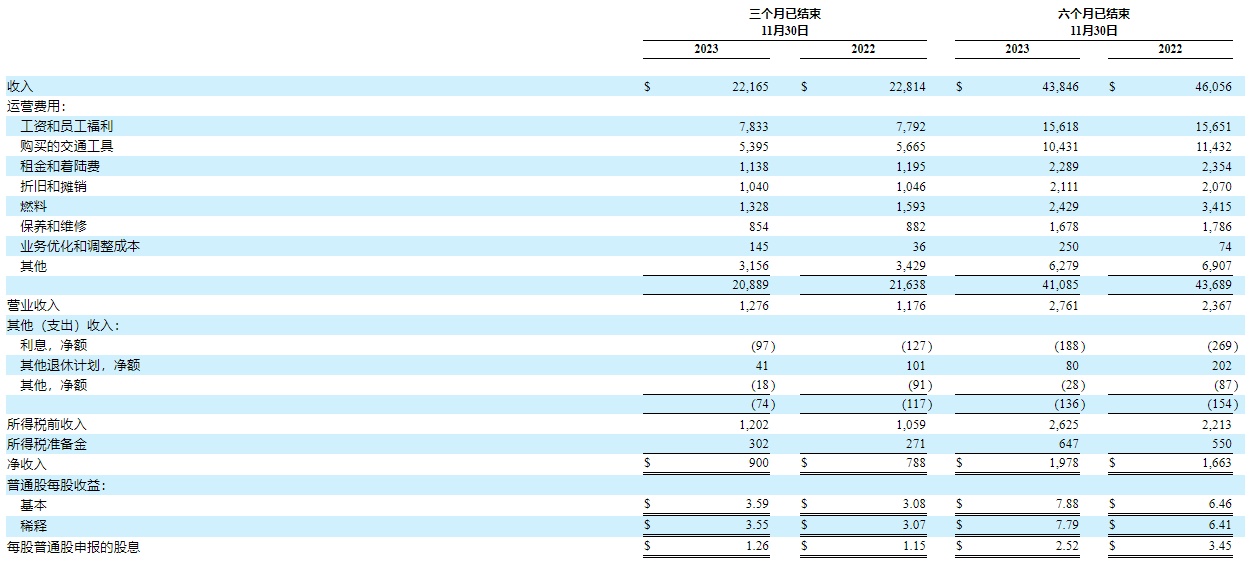 受益于此,联邦快递第二季度实现运营利润 12.76 亿美元,同比增长 8.5%,不过正和前文中 EPS 不如预期表现一致,联邦快递的运营盈利同样不足此前市场预期。