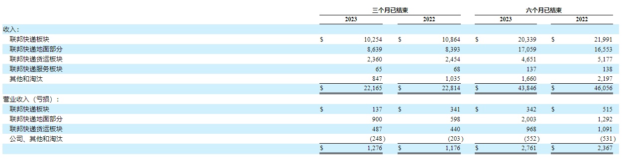 本季度快递部门的营收为 102.54 亿美元,同比下降了 5.6%。虽然对比上季度的 100.9 亿美元来说有回暖了一些,但是整体趋势并未见到明显改善。