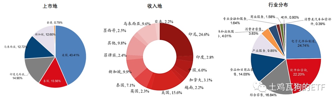 1、基本要素:$Global X FTSE Southeast Asia(ASEA.US) 跟踪新交所泛东南亚科技指数(Wind 代码 ASIATECP.GI,3、6、9、12 月调整成分股)旨在跟踪东南亚(新加坡、印尼、泰国、越南、马来西亚)和新型亚洲市场(印度),属于区域股票型 QDII,T+0 交易