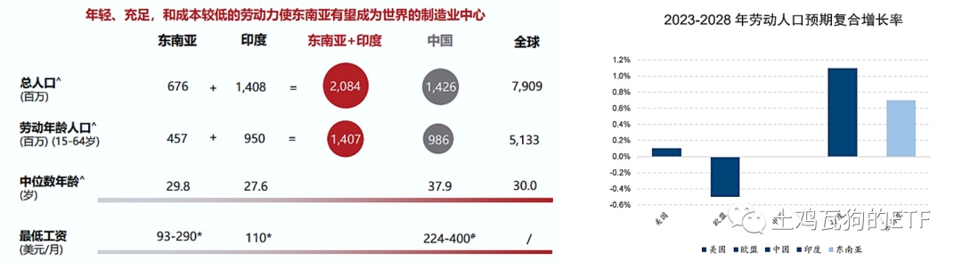 2、劳动力优势:根据联合国人口司《世界人口展望》的统计,泛东南亚地区的人口和适龄劳动人口规模为全球最大的地理区域。根据 2023 年东南亚数字经济报告,2023-2028 年东南亚的劳动人口复合增长率有望达到 0.7%,年轻、充足和低成本的劳动力资源,使泛东南亚有望成为新的全球制造中心。