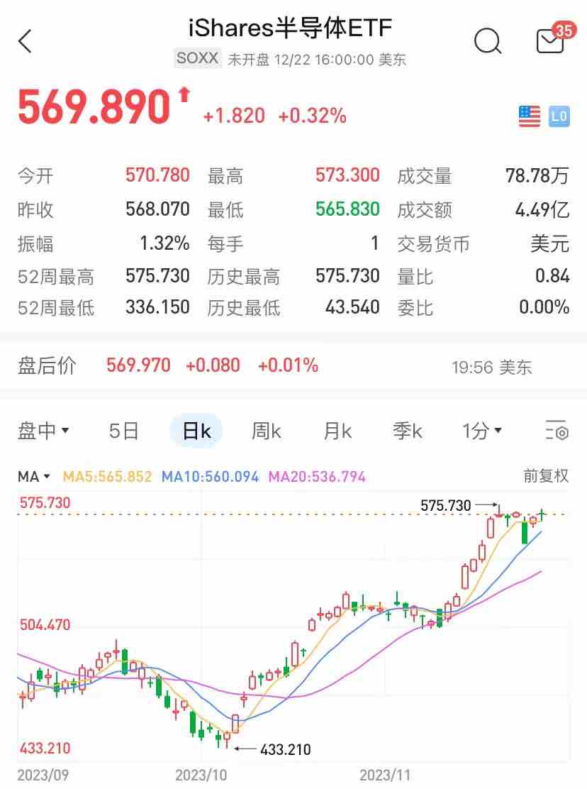 1. 趋势分析:通过观察 SOXX 的日线、周线和月线图表,我们可以看到总体上呈现出一个上升趋势。近期,SOXX 在技术指标上出现了一些超买的迹象,但整体上仍然保持着较强的势头。
