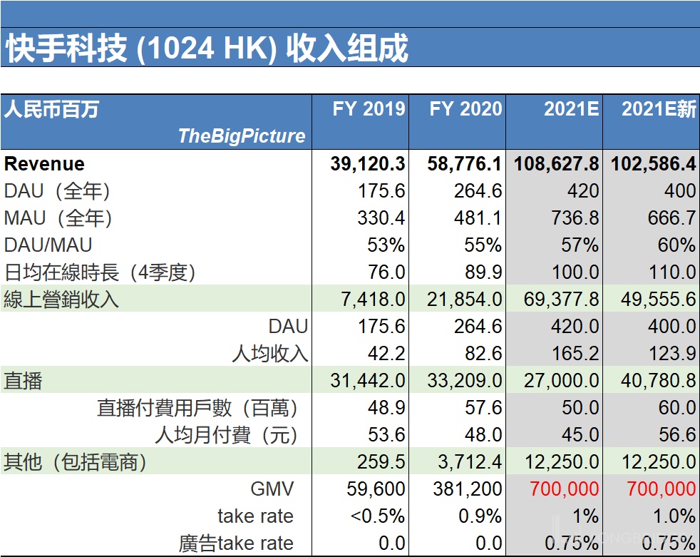 经营数据方面 DAU 差过市场预期,用户使用时长略好于市场预期。由于我手头没有经营数据的一致预期,我就对比跟我自己的预期:DAU 人数低于我个人预期,用户时长超我个人预期,直播付费用户数没有季度披露,平均直播用户付费高于我个人预期;广告收入低于我个人预期(主要由于 DAU 数不及预期,人均收入基本符合预期);电商收入 GMV 趋势符合预期,take rate 超出预期。