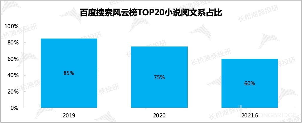 不过单论网文行业,行业竞争也在加剧,尤其是免费阅读对付费阅读的冲击还是比较明显的。以往做惯了老大的阅文集团,TOP20 排行榜中的作品占比也在逐年下滑中。