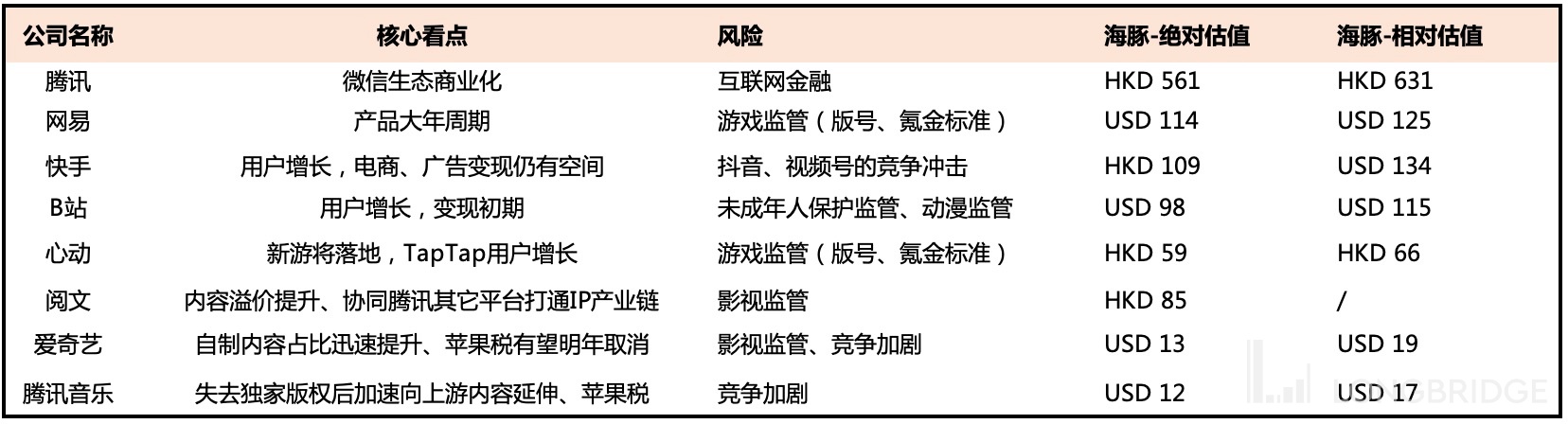 上半年泛娱乐行业整体估值快速下滑,核心标的基本都落到了底部区间,有些标的比 2018 年还惨。海豚君认为,在监管稳步落地的下半年,泛娱乐行业不乏一些跌穿价值的底部机会。