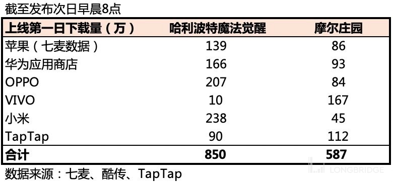 《哈利波特》已经在 9 月 9 日全平台上线(PC 端、移动端),从目前热度来看,表现还不错,上线仅 1 天 TapTap、华为、苹果(七麦数据)三个渠道下载就累计达到 400 万的下次,超过了上一款火爆手游《摩尔庄园》的当日热度。