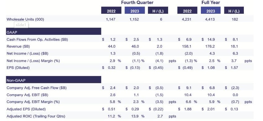 Likes Received财报解读之福特汽车:营收增速下滑,罢工拖累盈利,放缓电动转型(2023Q4)