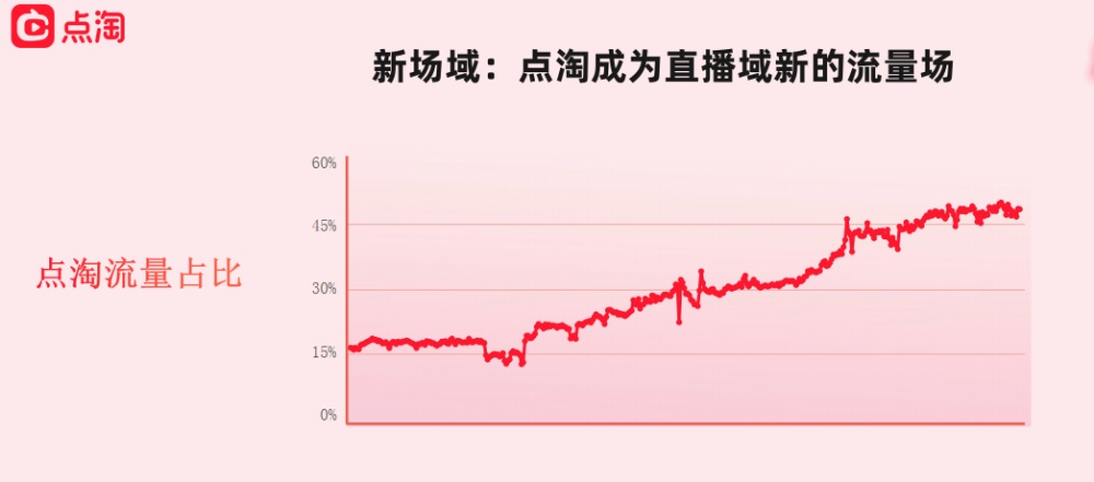 还有一个,点淘作为独立 APP,加入了短视频这种流量创造场之后,来自短视频的流量对淘宝直播流量占比的贡献已经大幅上升了。