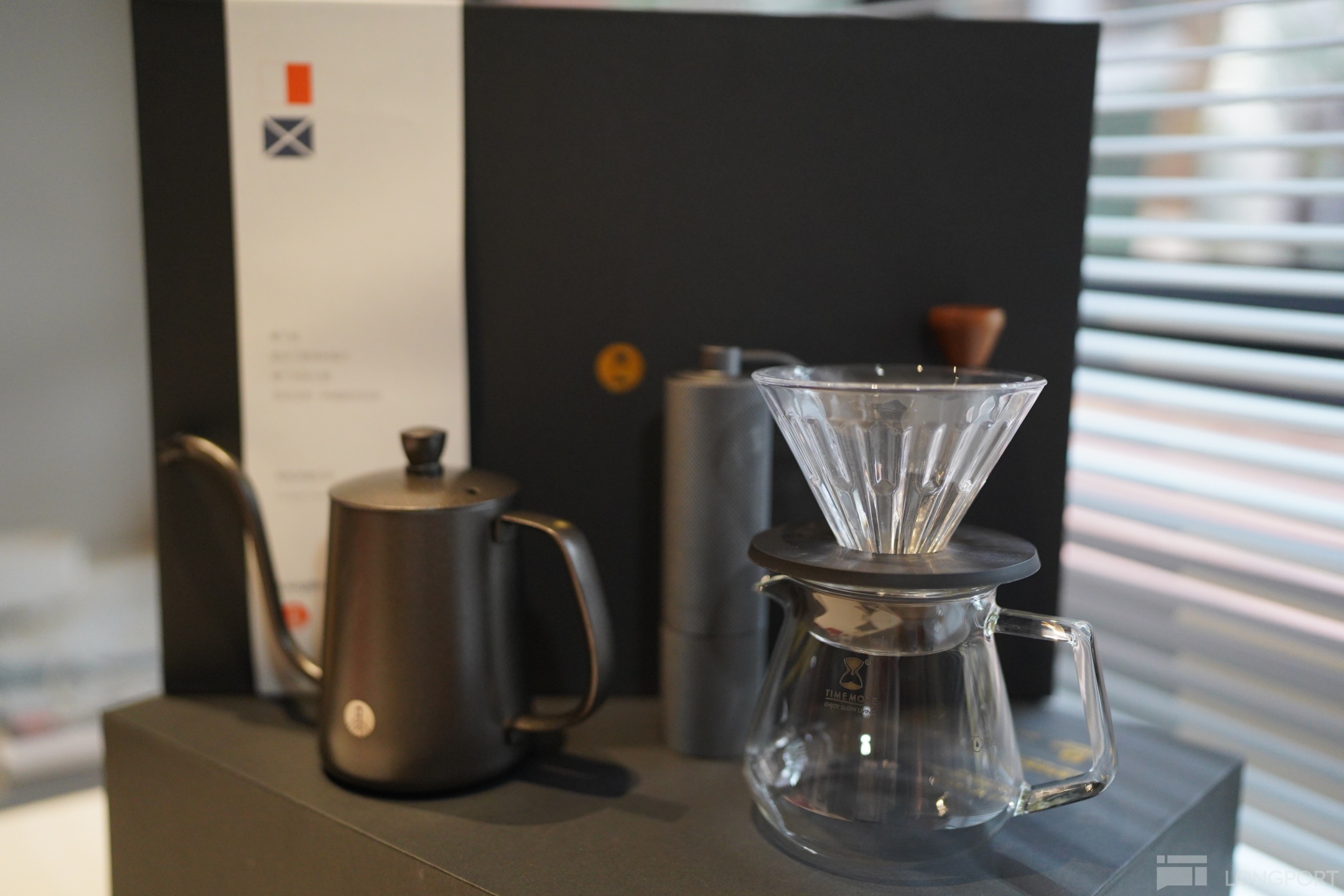 - 长桥 × 泰摩联名定制版手冲咖啡套装礼盒,包含手冲壶、分享壶、滤杯、研磨器、滤纸等;