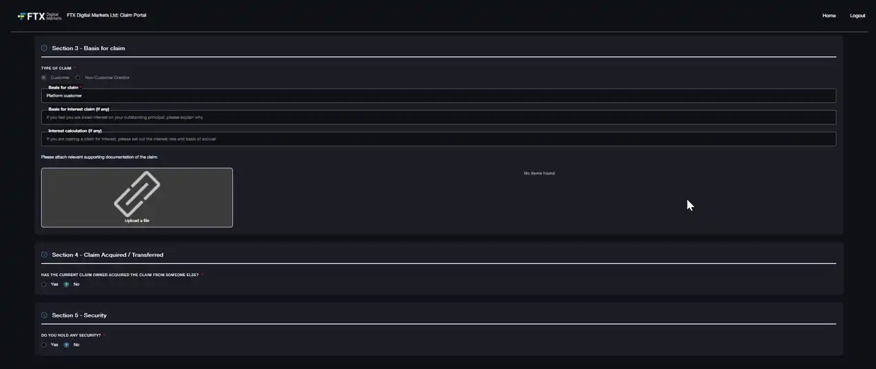 · 第 4 部分 - 获得/转让的索赔,如果是从另一方购买的 FTX 资产,须注明相应信息。
