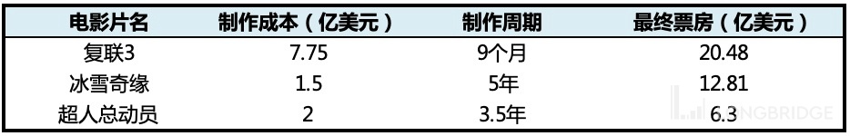 随便列举几个近年热门的迪士尼出品电影,成本都在亿元级别。
