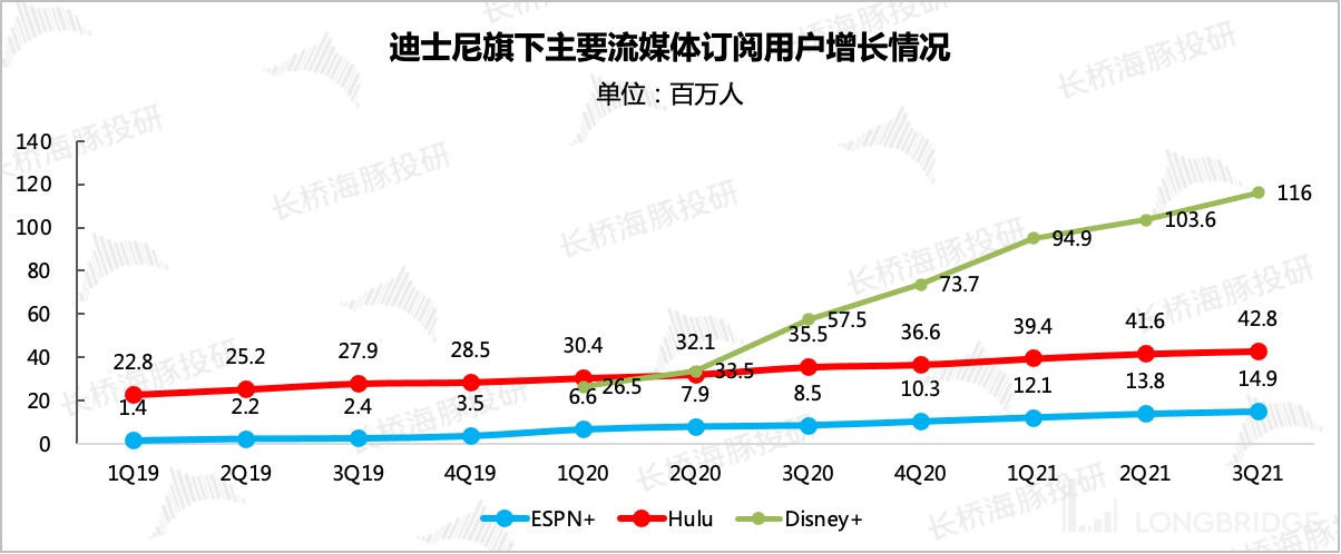 不过如果换一个角度,这也说明长期下流媒体的潜在市场巨大。因此尽管迪士尼从 2020 年才正式推出自己的流媒体平台 Disney+,之前主要靠收购别家的,动作虽晚但仍然不算太迟。尤其是在近两年疫情封锁期间,用户使用习惯在被动教育下,流媒体的渗透之路会比之前的预期走得更轻松一些。